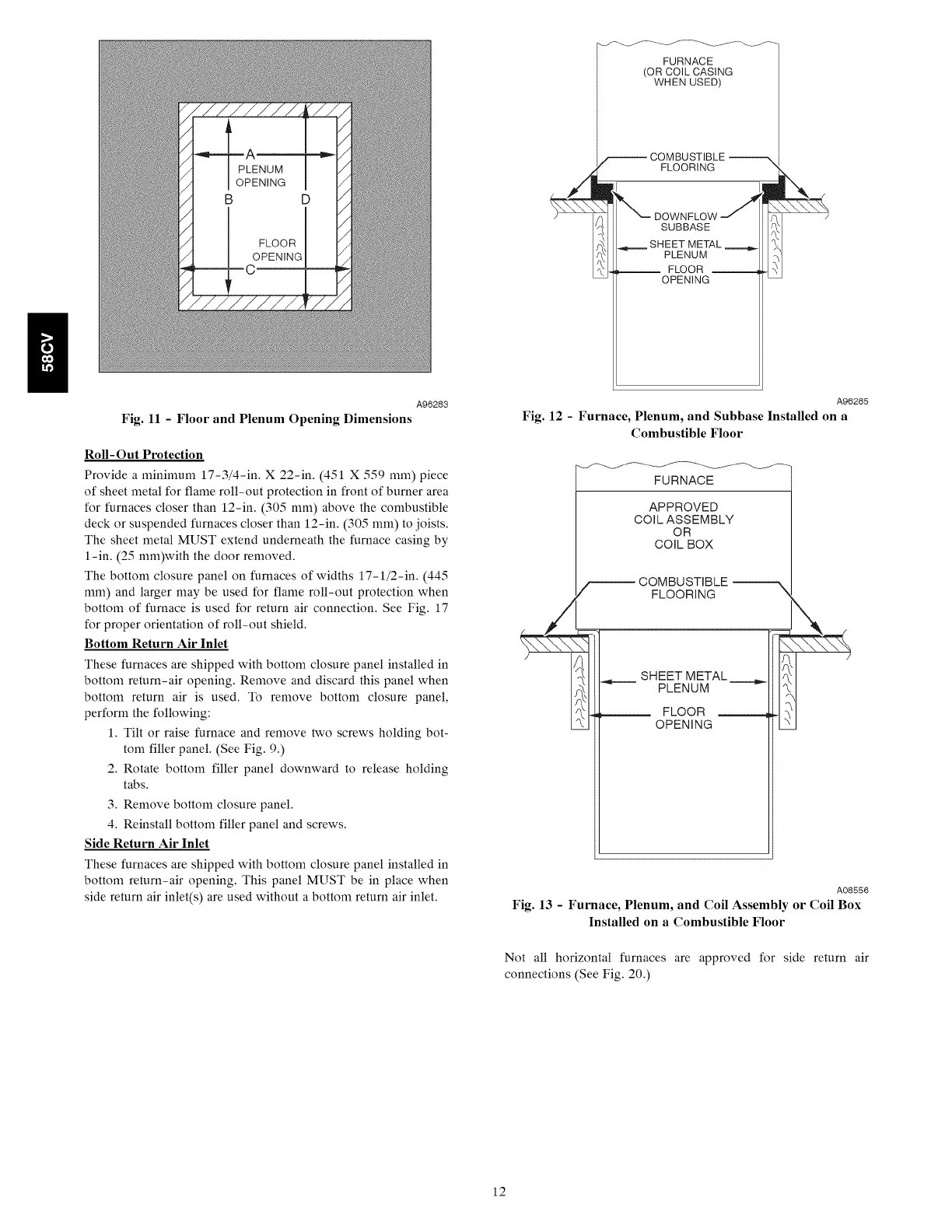Carrier 160 Series - Roll-Out Protection; Bottom Return Air Inlet; Side Return Air Inlet