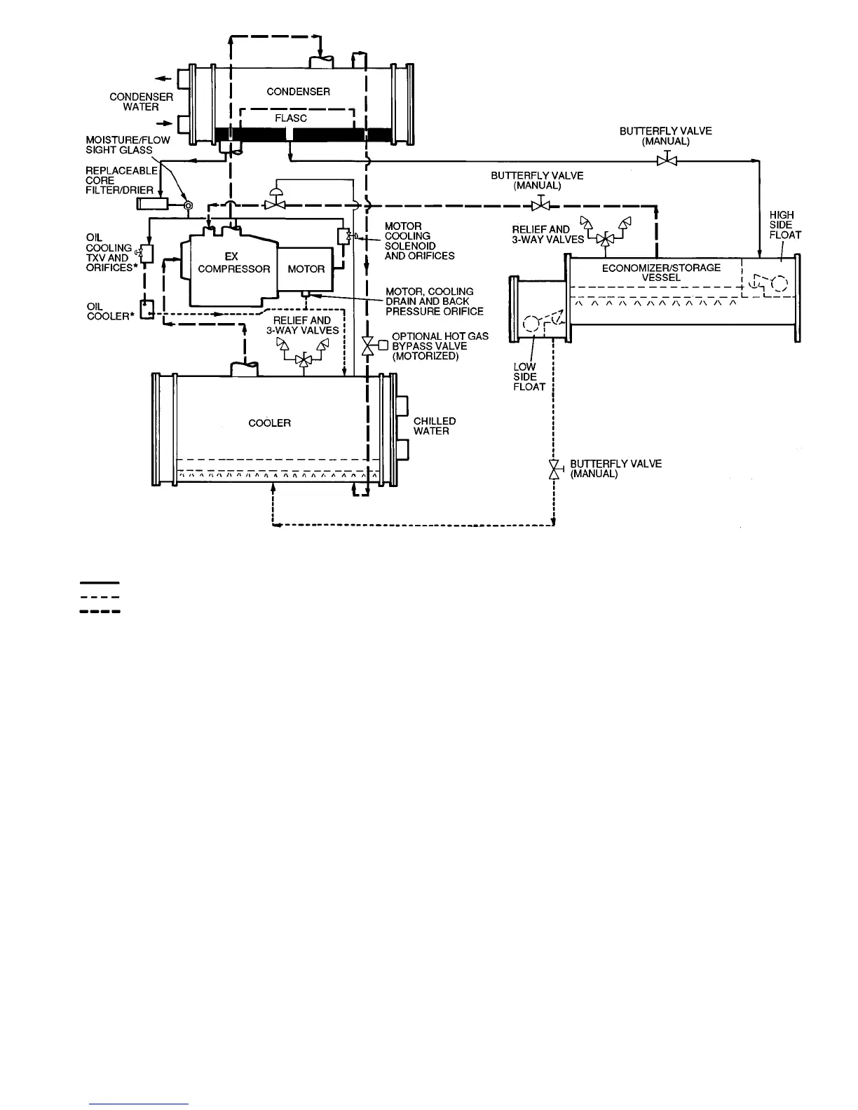 Fig. 4 Refrigerant, Motor Cooling, and Oil Cooling Cycles (19EX Shown)