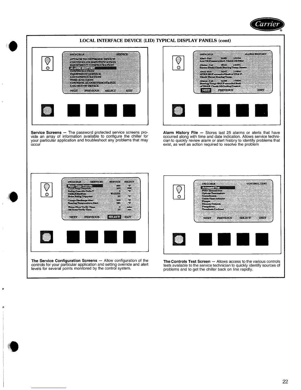 Carrier 19EX - LID Service and History Displays; Service Screens and Alarm History; Controls Test and Configuration