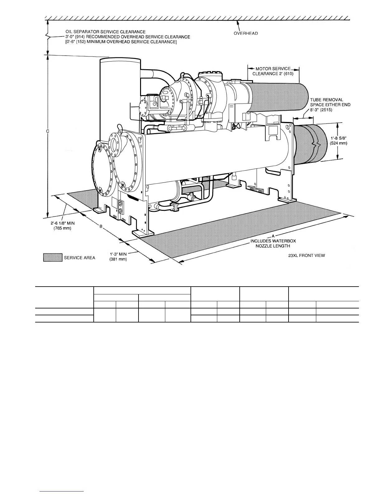 2. Allow at least 6 in. (152 mm) overhead clearance for service rigging.
