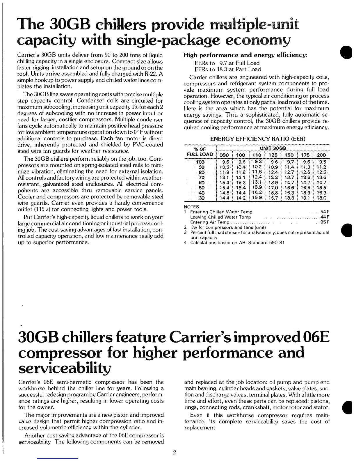Carrier 30GB - The 30 GB chillers provide multiple-unit capacity with single-package economy; High performance and energy efficiency; Improved 06 E compressor for higher performance