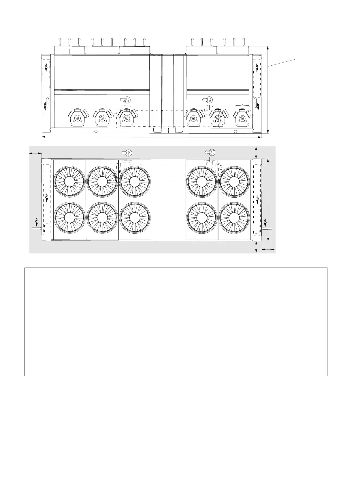 • At least two sides of the units must be free from obstructions, to ensure proper air flow.