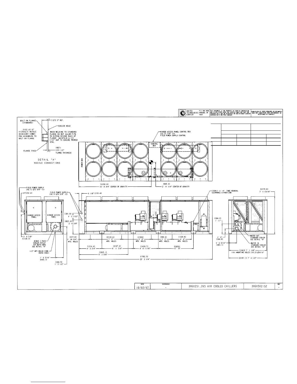3. Center of gravity shown is for aluminum fin coil. See