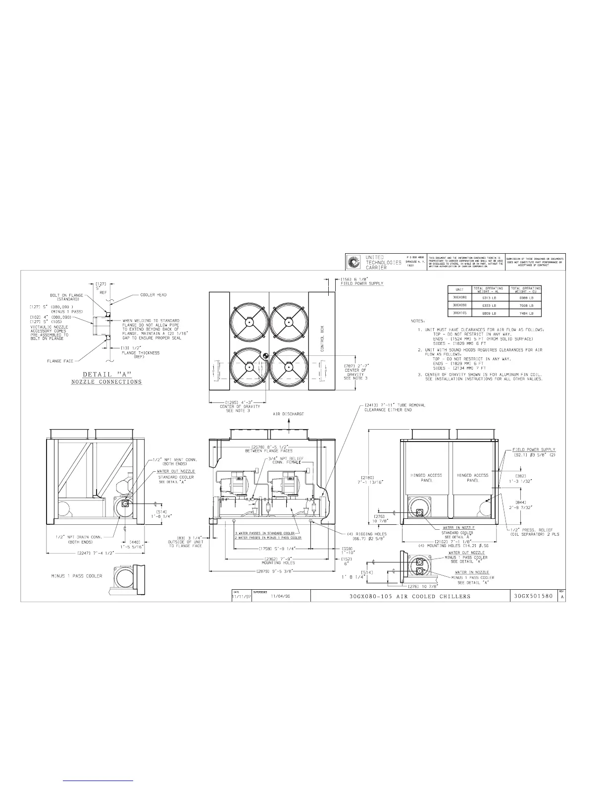 Carrier 30GX080-265 - Certified Dimension Print; Dimension Print for 30 GX080-105 Models