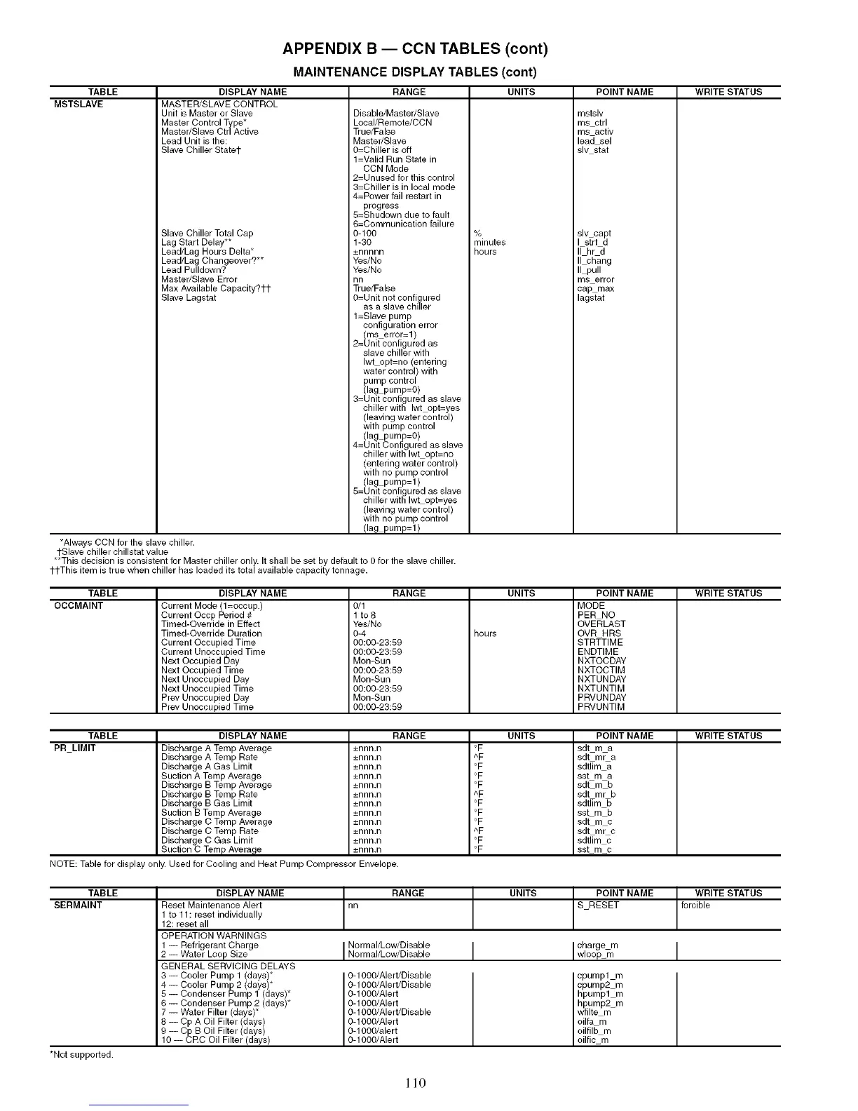 TABLE DISPLAY NAME nn RANGE UNITS POINT NAME forcWRelTE STATUS