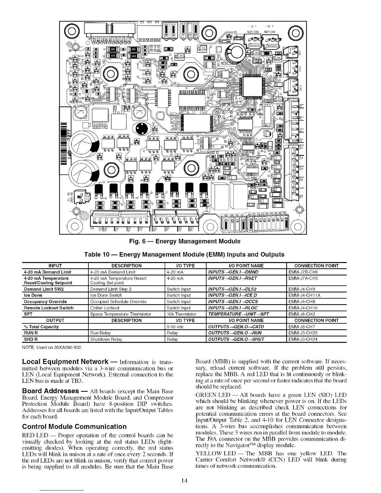 Table 10 -- Energy Management Module (EMM) Inputs and Outputs