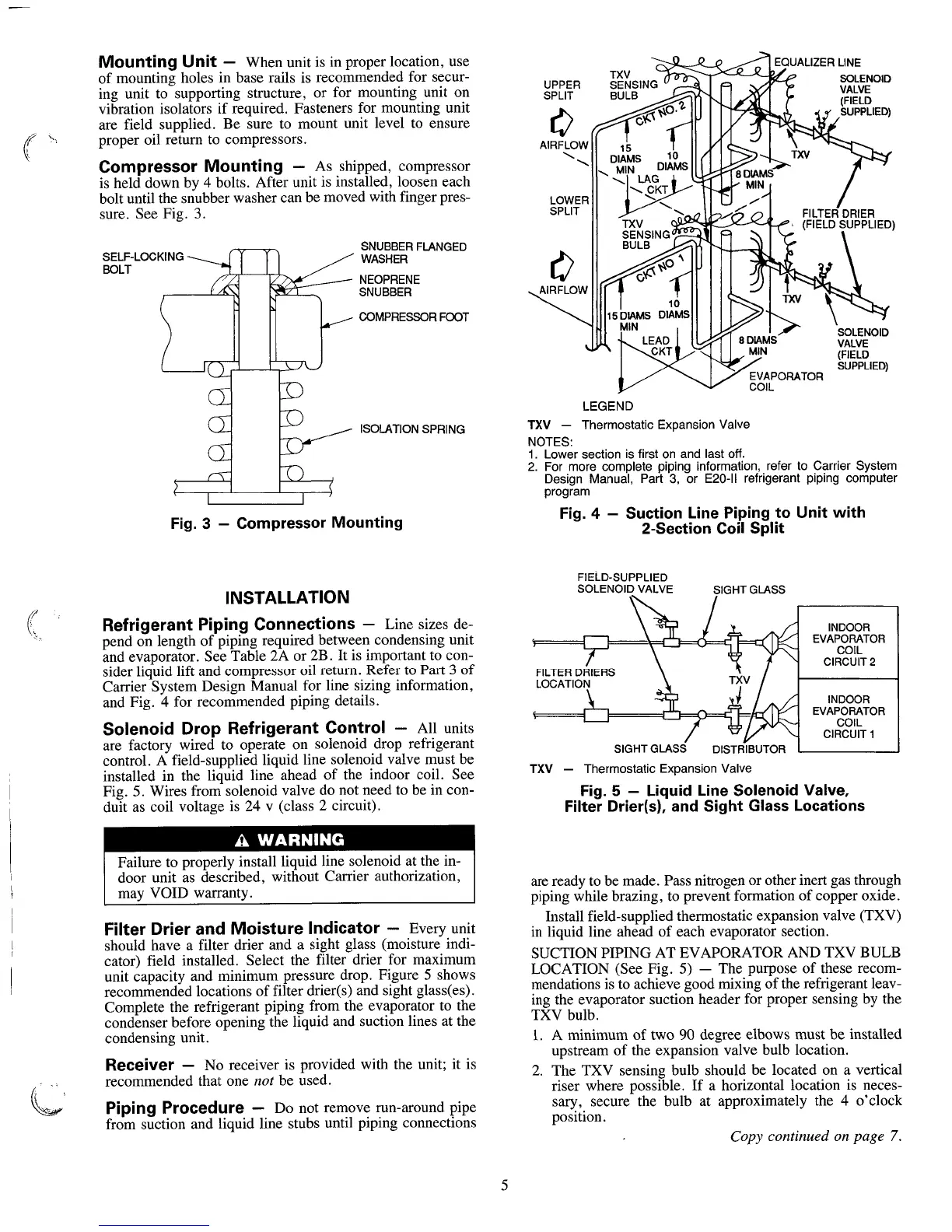 Carrier 38AH024-034 - Installation; Mounting Unit; Compressor Mounting; Refrigerant Piping Connections