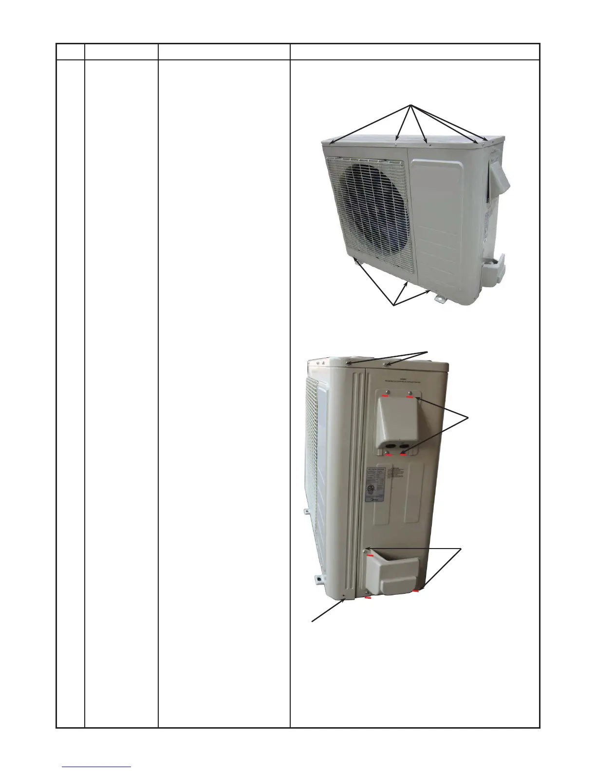 No. Part name Procedures Remarks