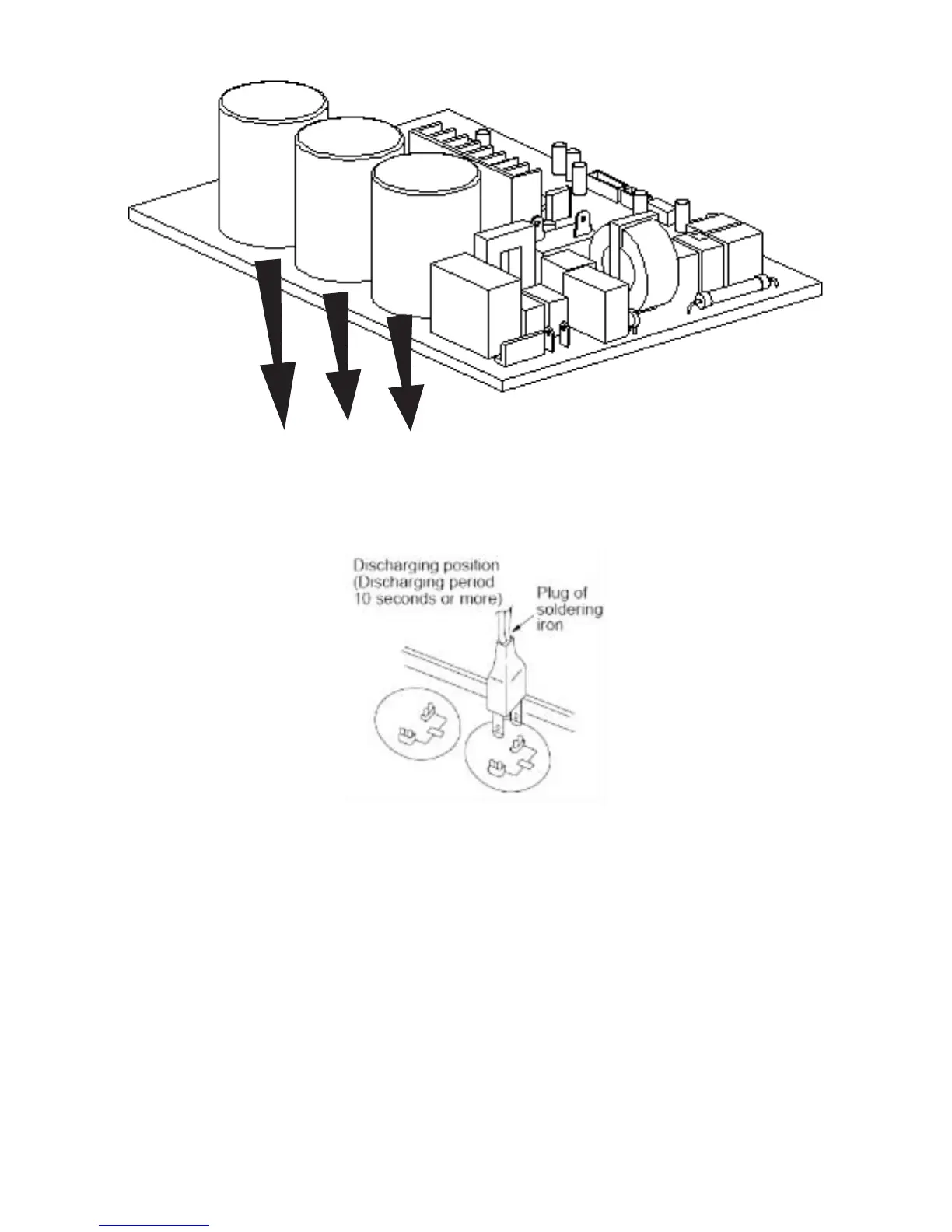For other models, please connect discharge resistance (approx.100Ω 40W) or soldering iron (plug) between +, − terminals of the electrolytic