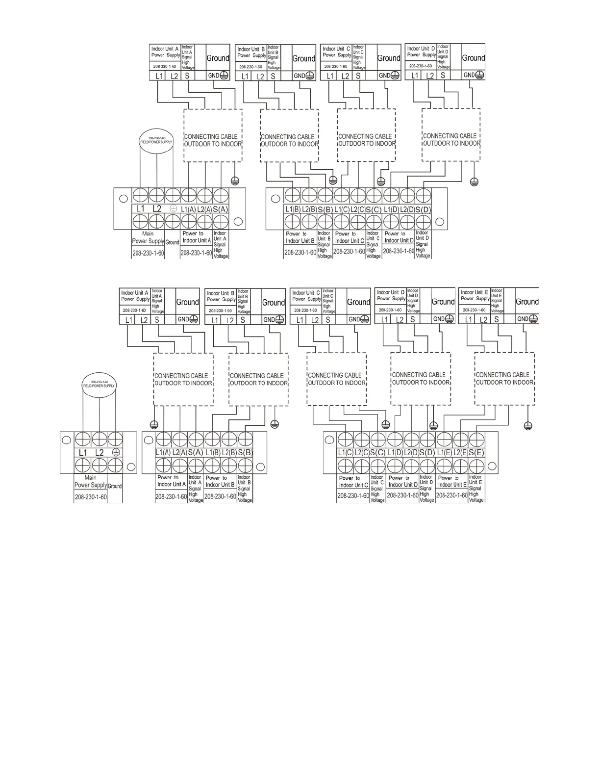2. All connections between indoor and outdoor units must be as shown. The connections are sensitive to polarity and will result in a fault code.