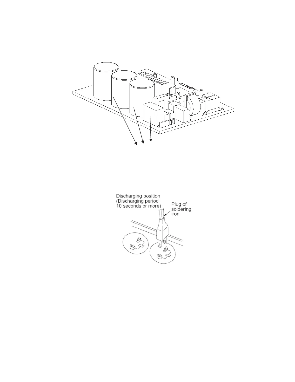 For other models, connect the discharge resistance (approximately 100 40W) or a soldering iron (plug) between the +, - terminals of the