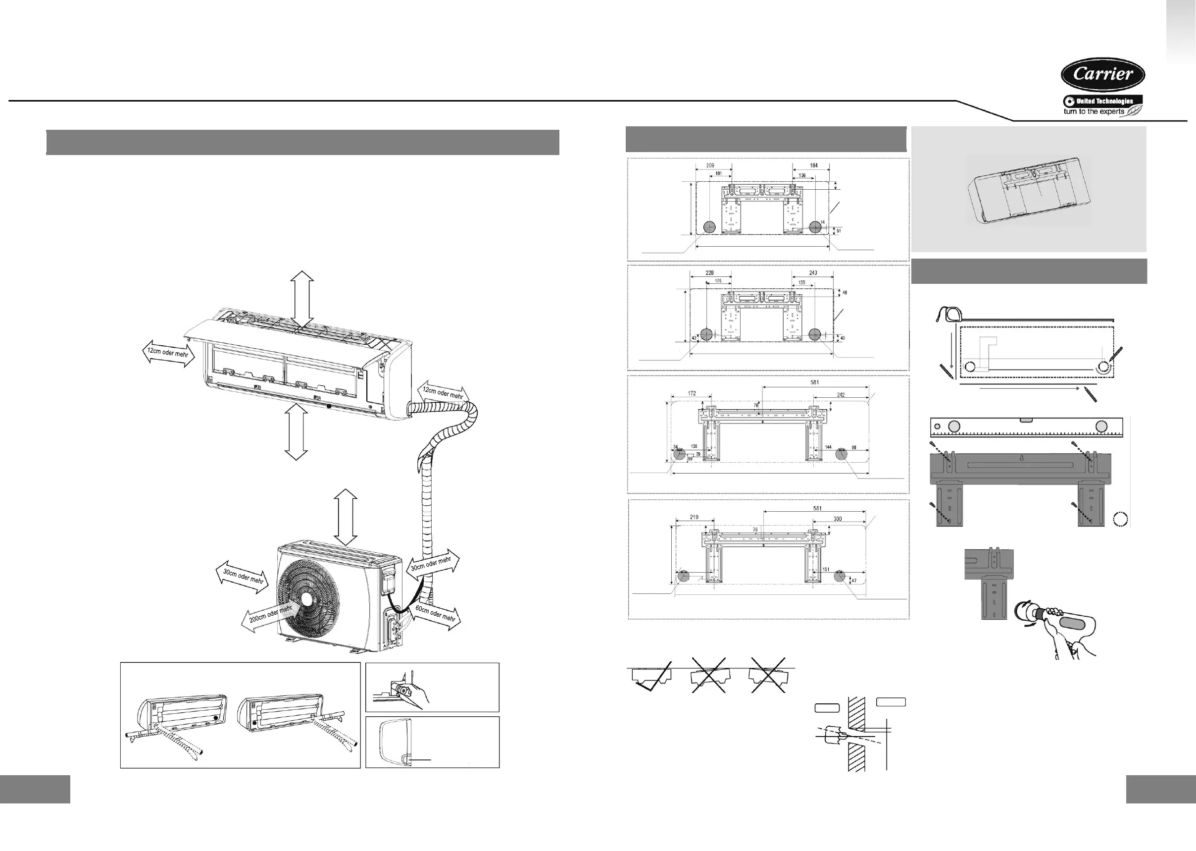 - Ein Standort, der das Gewicht des Innengeräts aufnehmen kann.