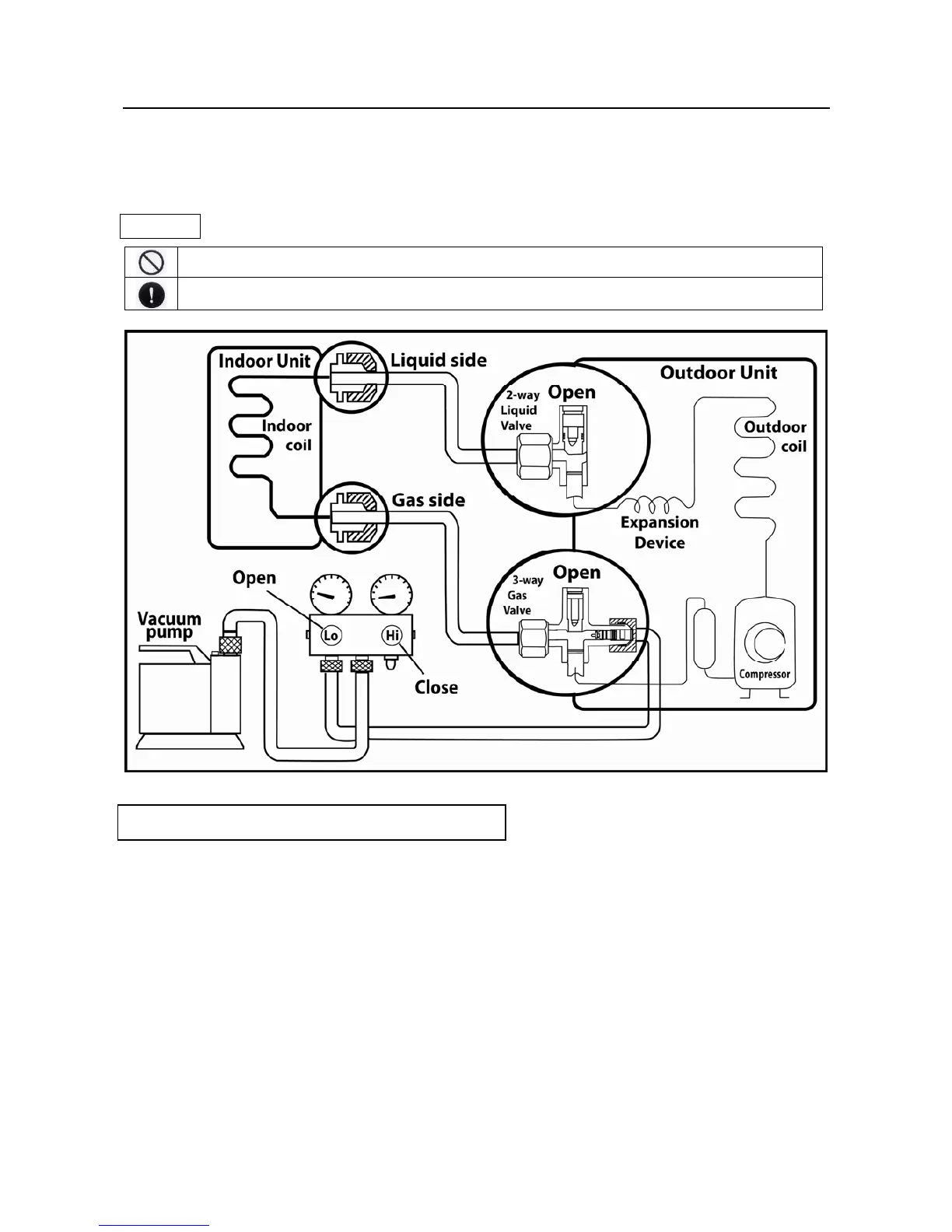 NEVER use the system compressor as a vacuum pump.