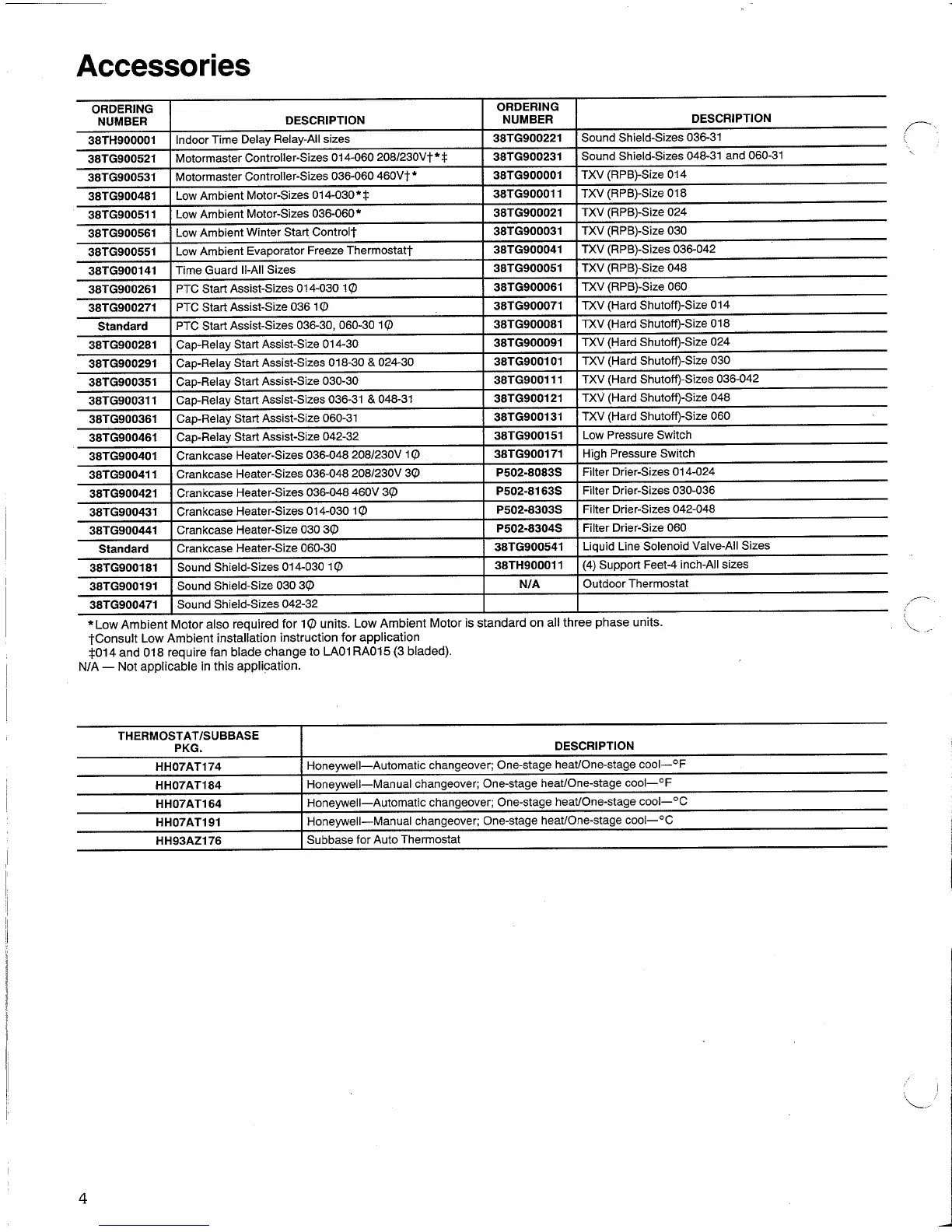 Carrier 38TG - Accessories; Accessory Listing and Options