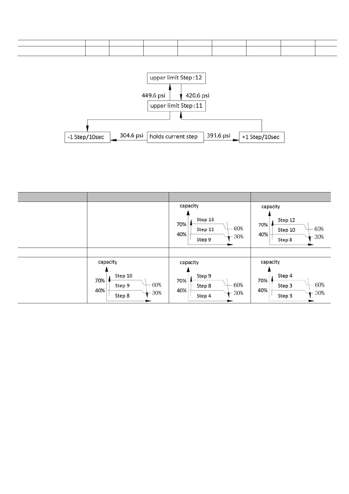 When compressor ramps up, fan speed will be at the initial step for 90 seconds. Then the fan will be controlled per the fan