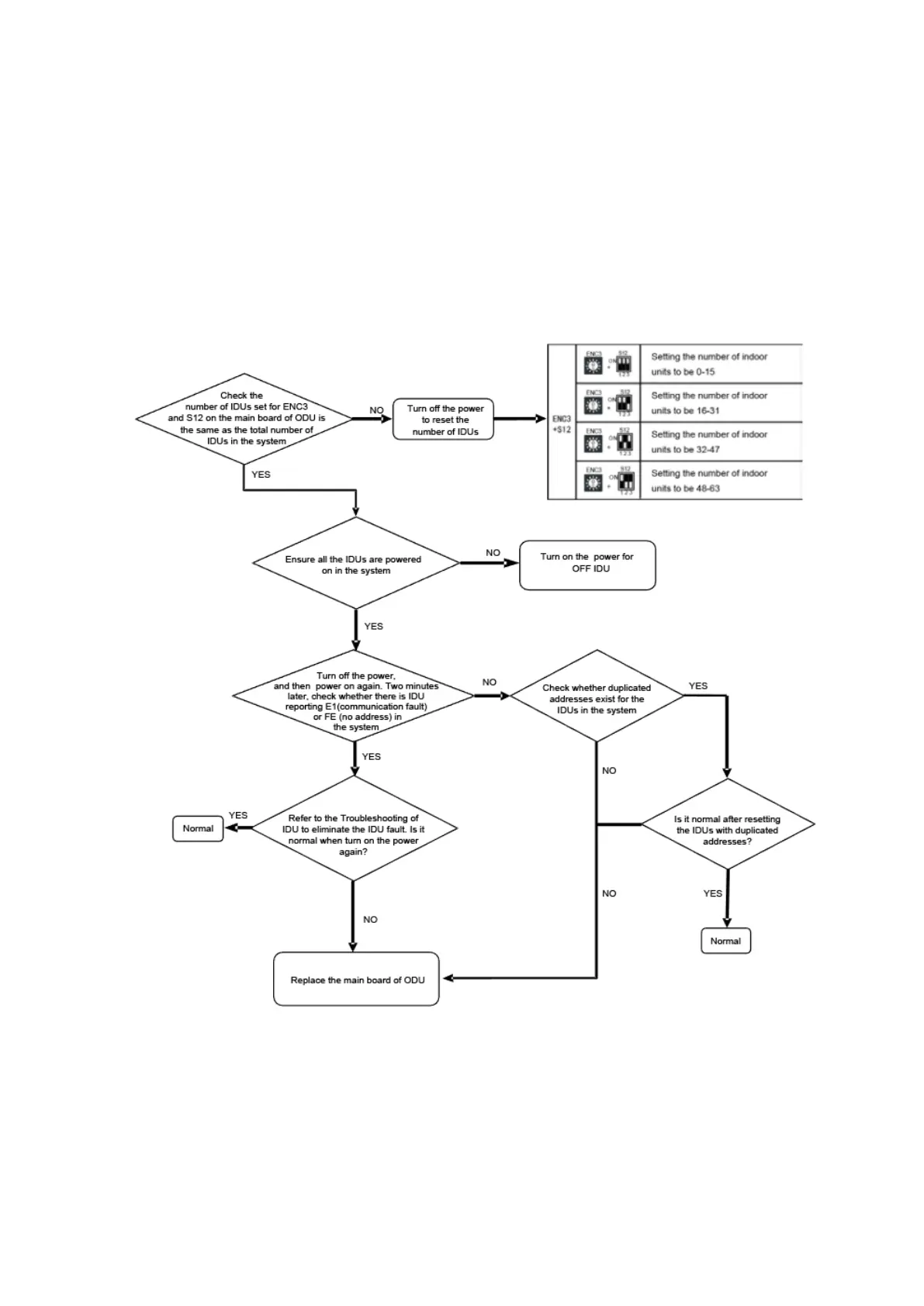 The number of physically connected indoor units to an outdoor unit does not match the ENC3 + S12 setting.