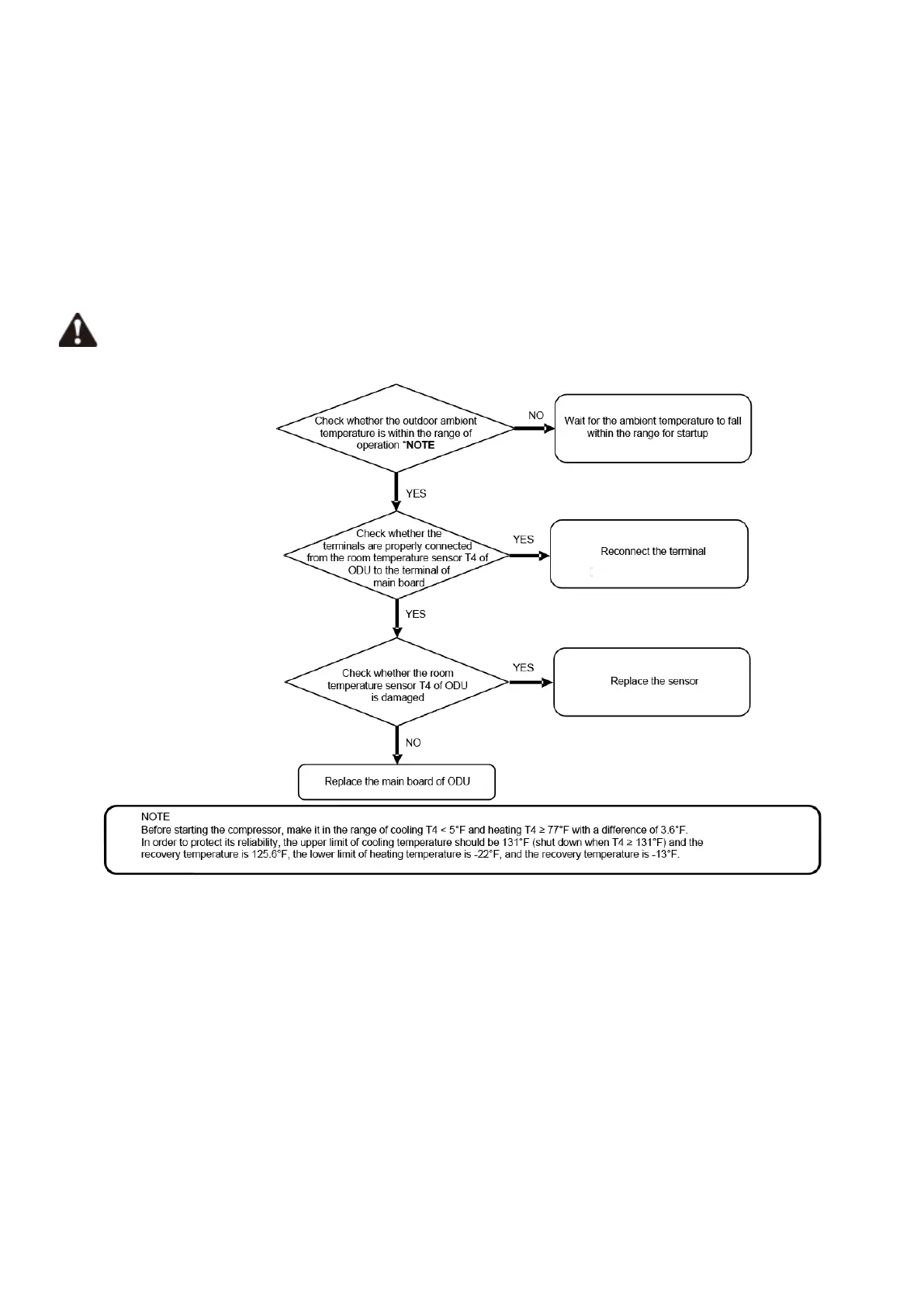 ODU operating outside the allowable limits (allowable limits: cooling 5~125FDB, heating -4~64FWB)