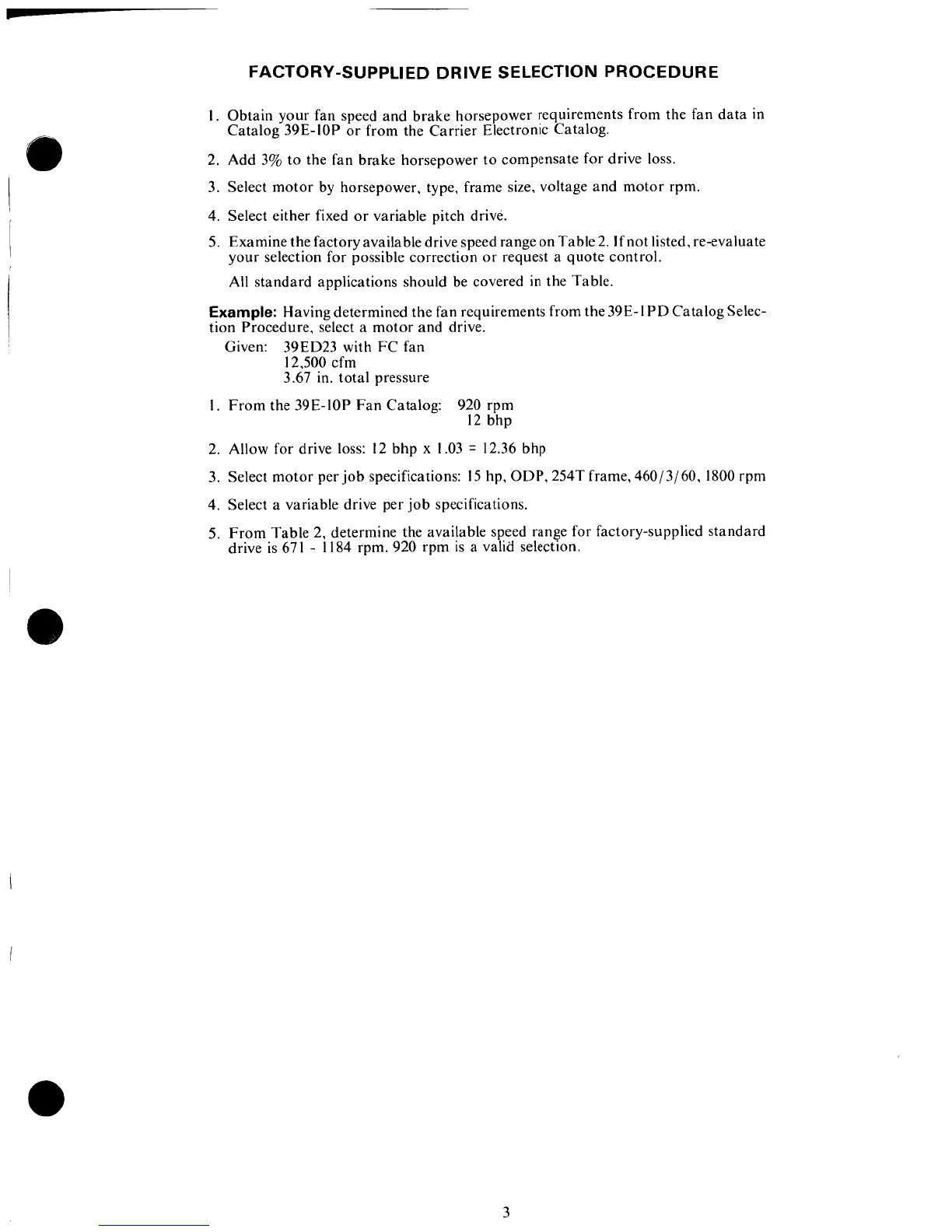 Carrier 39E/ER - Drive Selection Procedure