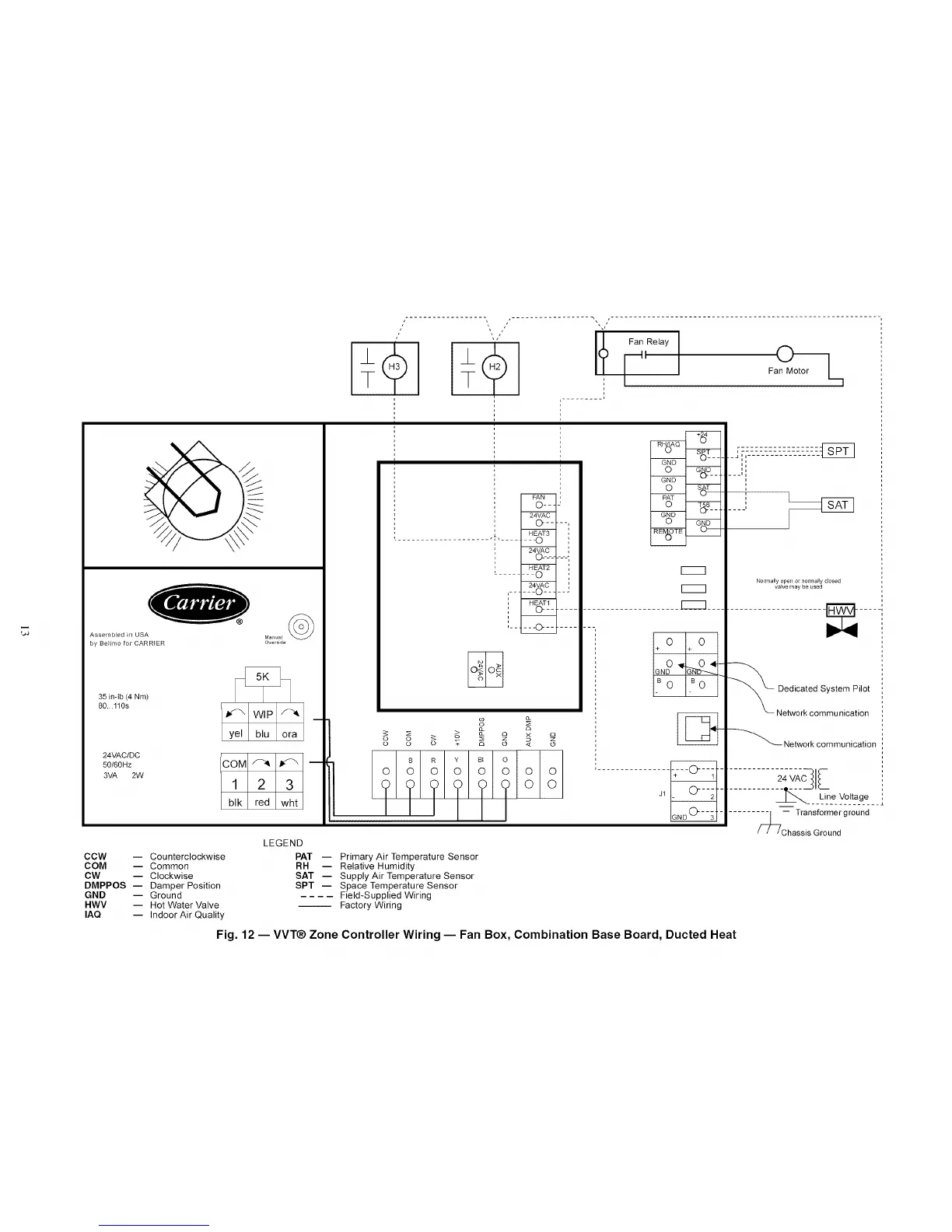 Fig. 12 -- VVT® Zone Controller Wiring -- Fan Box, Combination Base Board, Ducted Heat