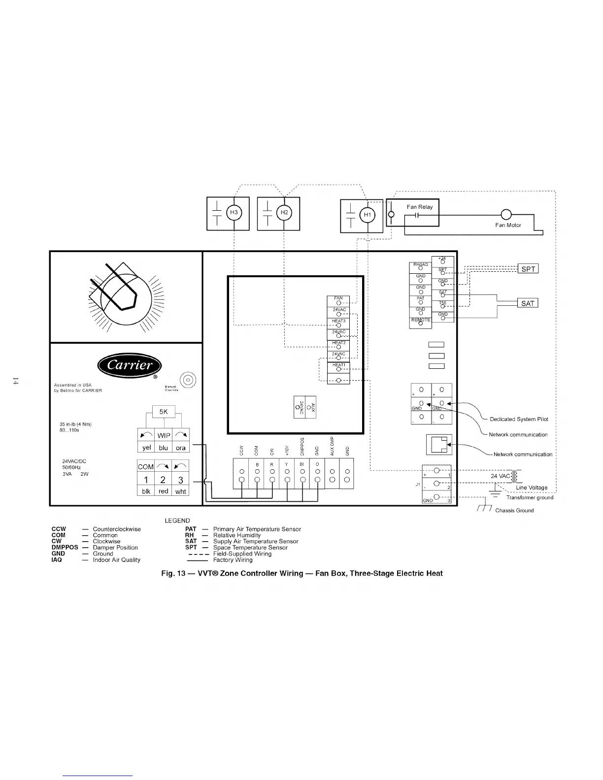 Fig. 13 -- VVT® Zone Controller Wiring -- Fan Box, Three-Stage Electric Heat