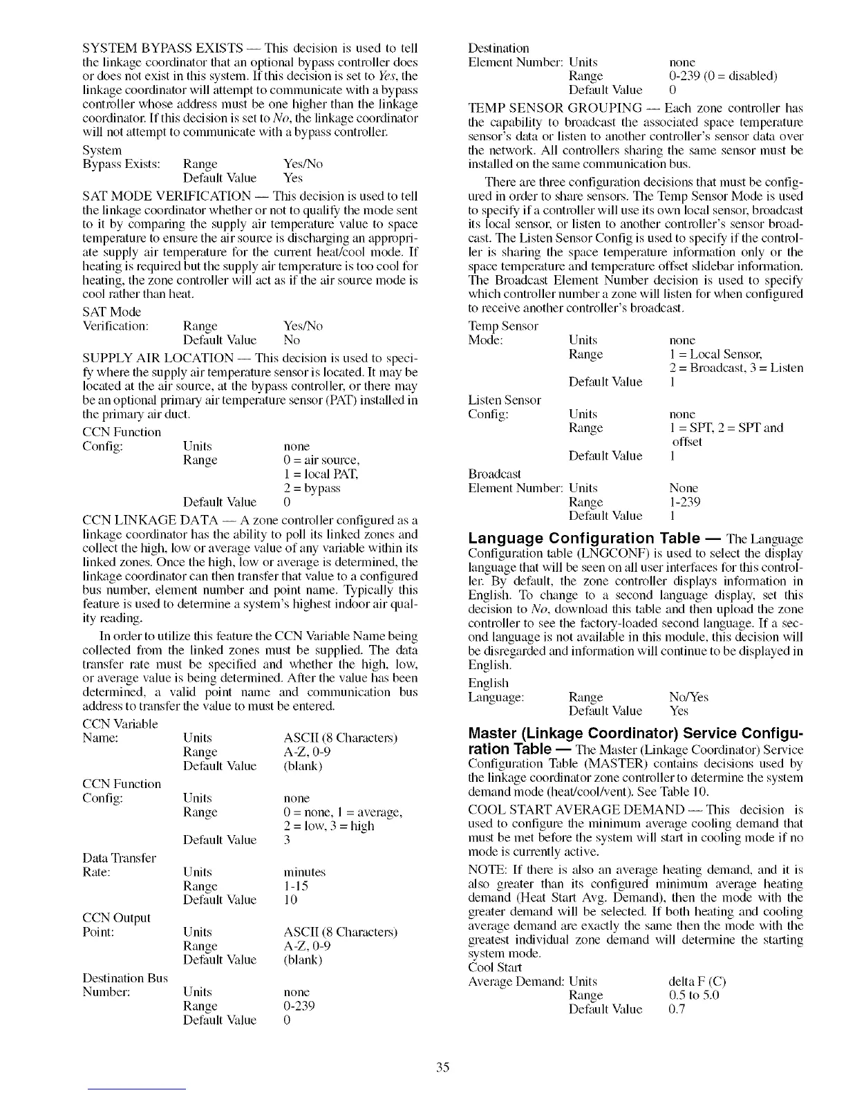 CCN LINKAGE DATA -- A zone controller configured as a