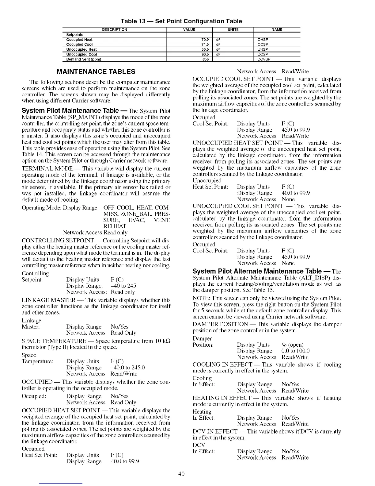 UNOCCUPIED COOL SET POINT -- This variable dis-