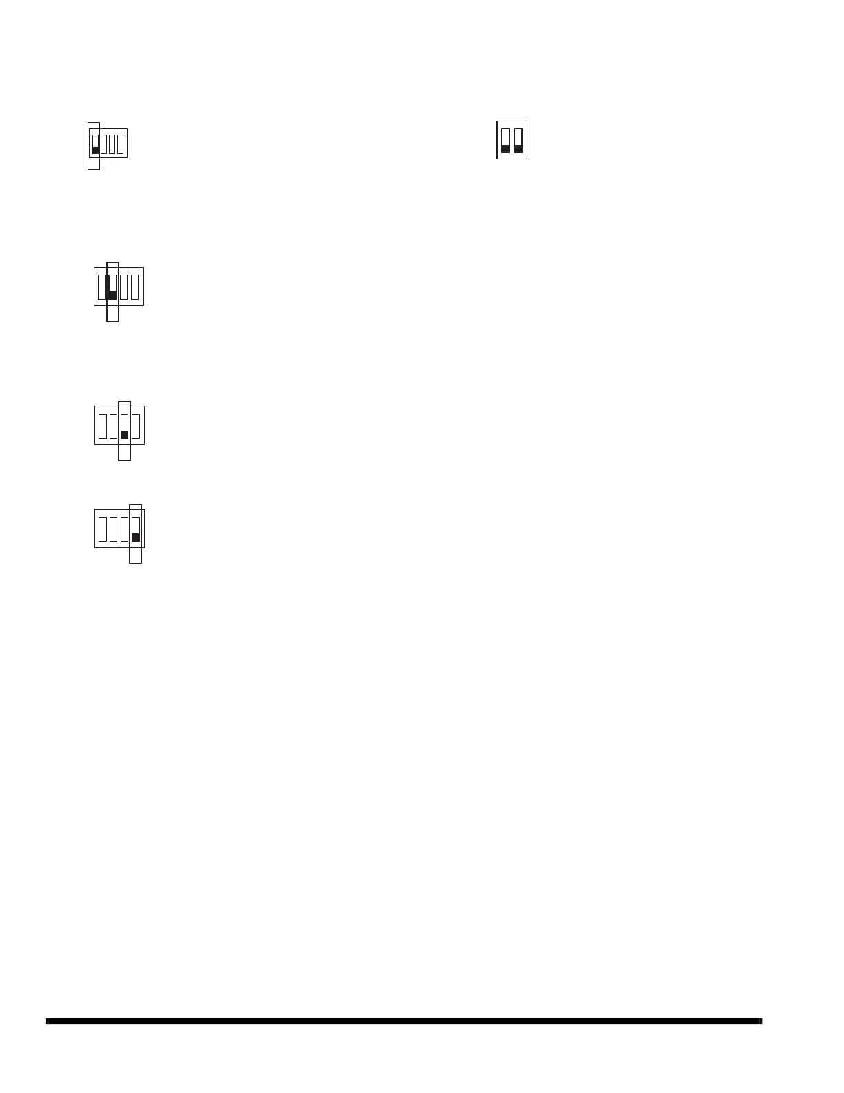 There are two DIP switches on the main board. Figures A and B show the settings for each parameter controlled by a switch. Switches are