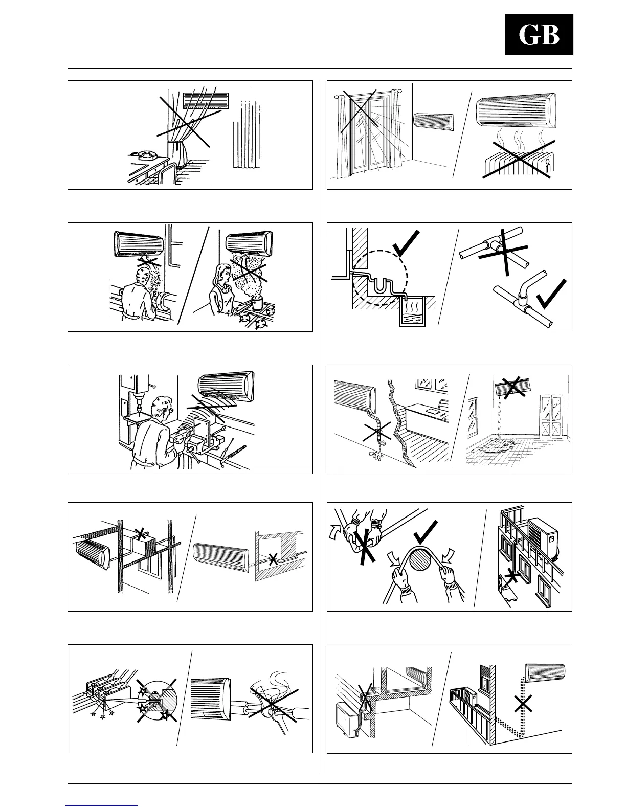 Flattening or kinking the refrigerant pipes or condensate pipes.