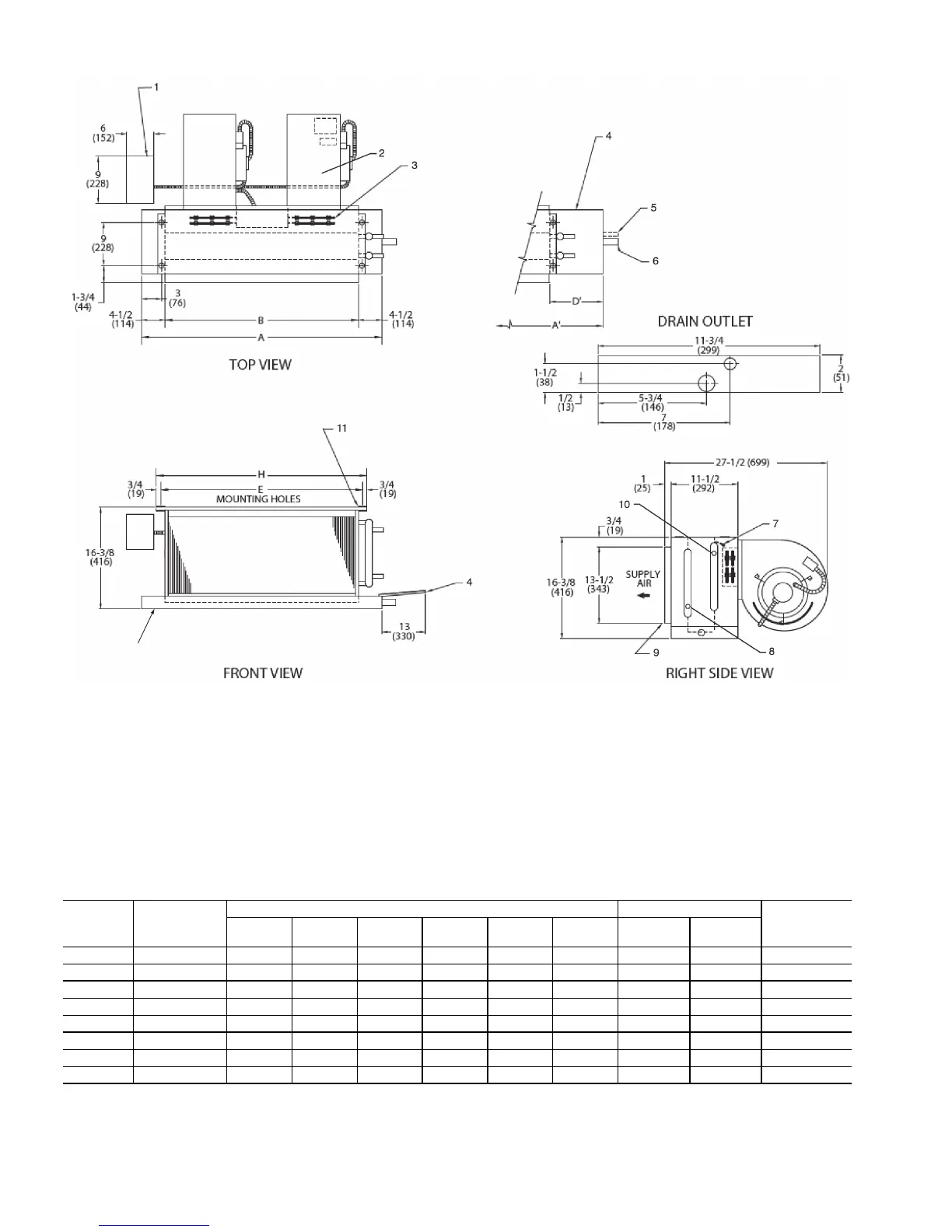3. Standard 4-row coil shown. Other coil option dimensional data