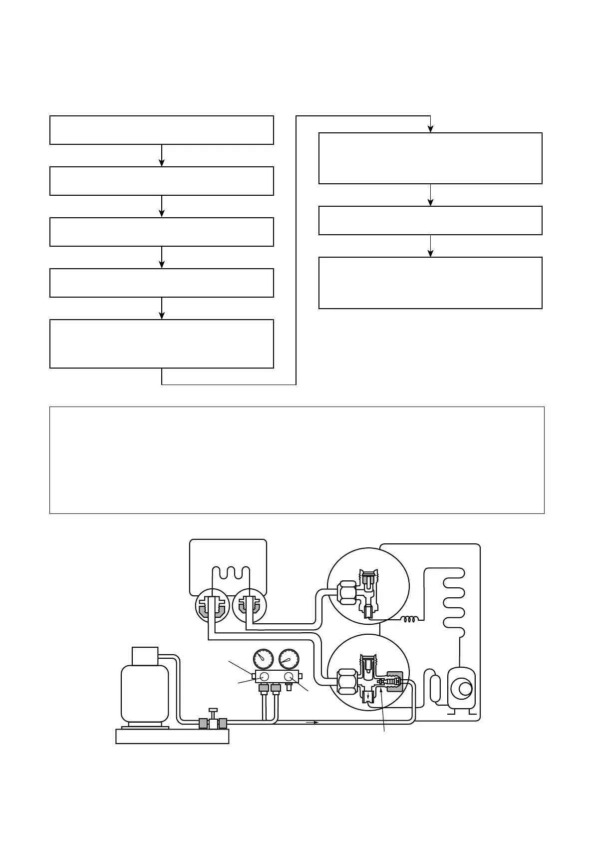 2. If the specified amount of refrigerant cannot be charged, charge refrigerant bit by bit in COOL mode.