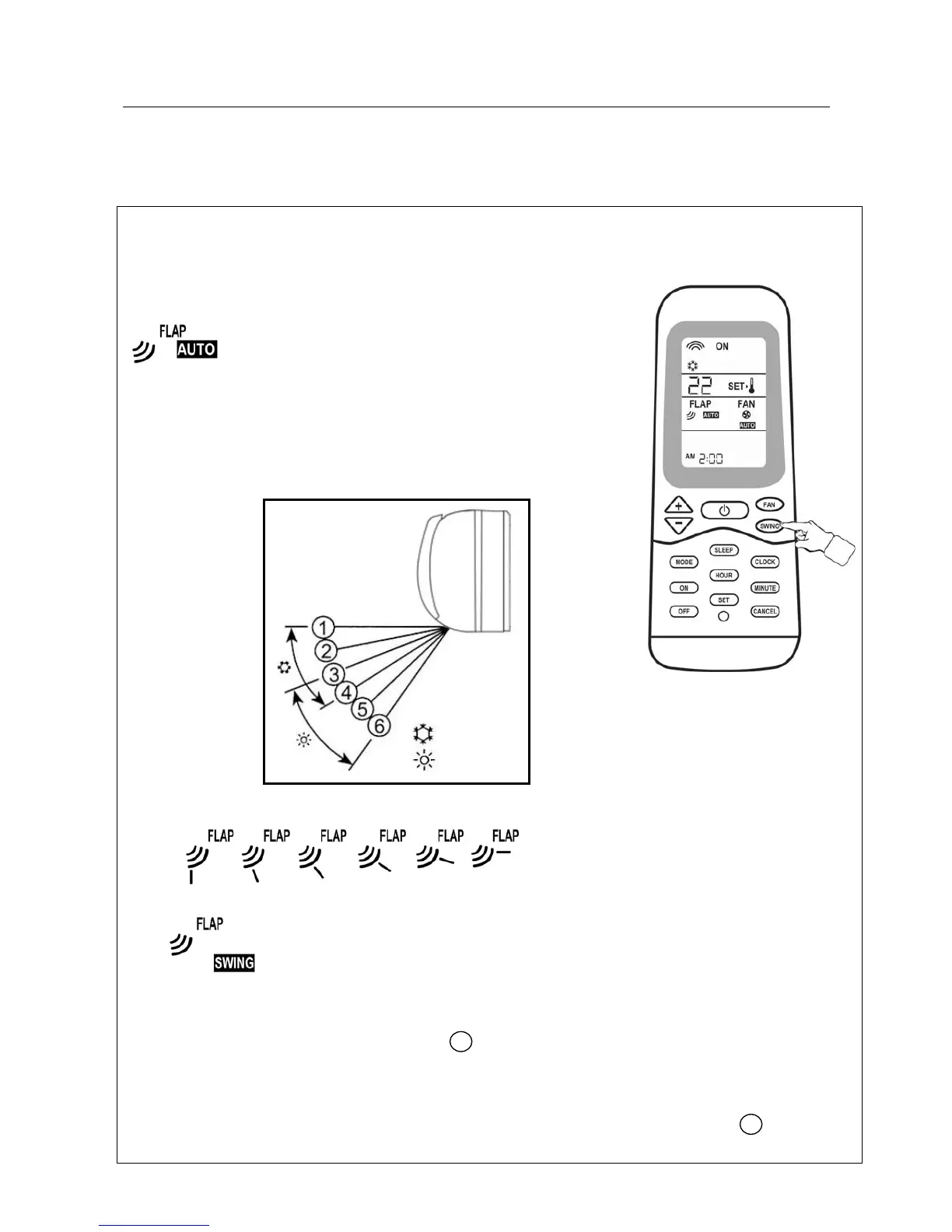 • Do not adjust the flap by the hand during SWING operation because it may damage