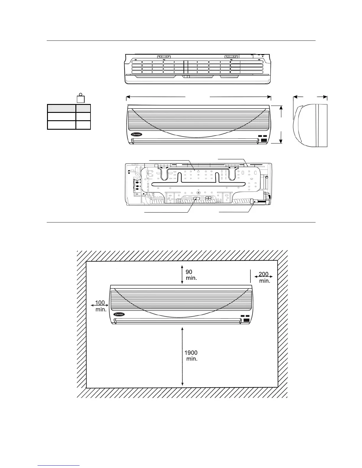 Carrier 42QG24-C - 4-2 INDOOR UNITS; MINIMUM CLEARANCES FOR FREE AIR CIRCULATION, SERVICE AND MAINTENANCE