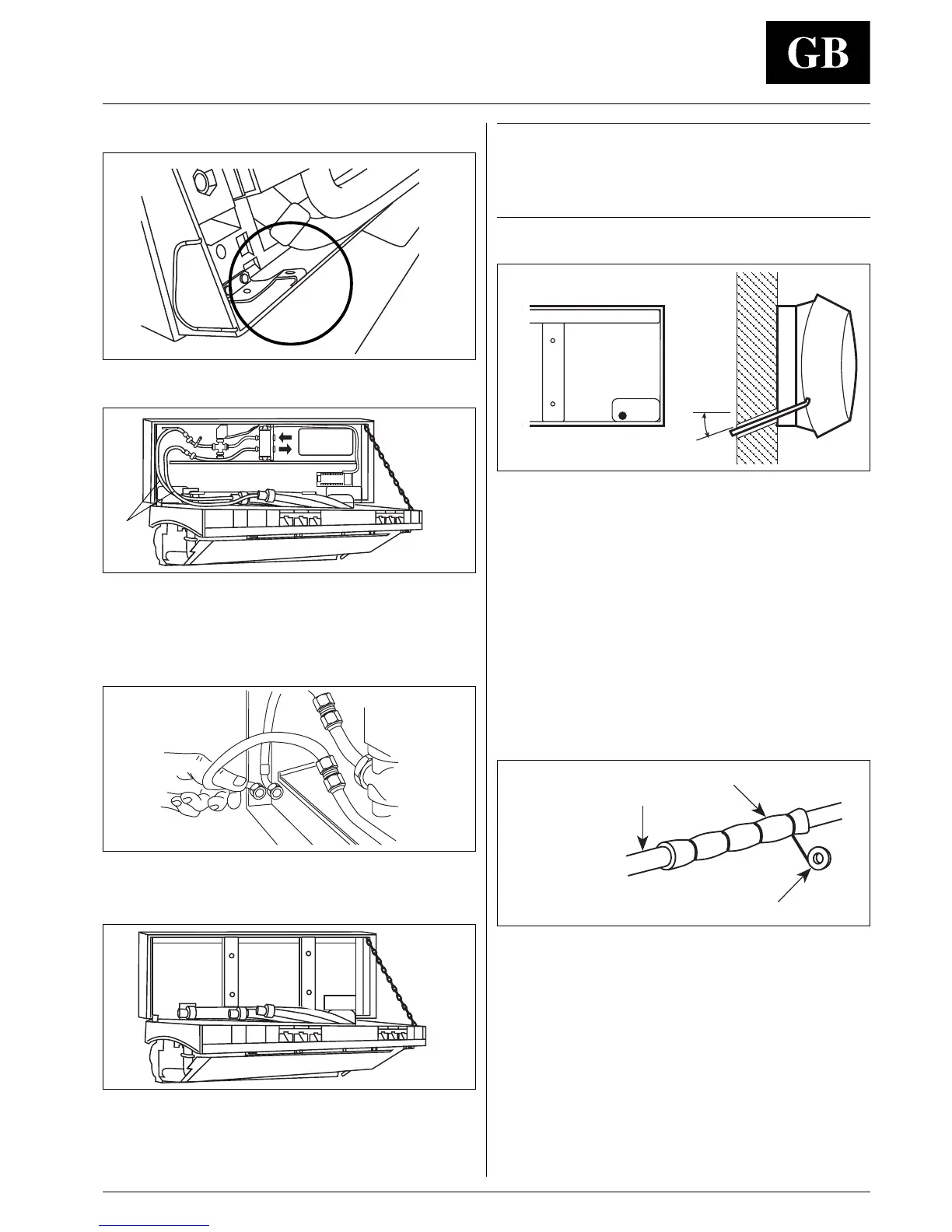 Connection pipes and electric cables must be fixed to the wall using