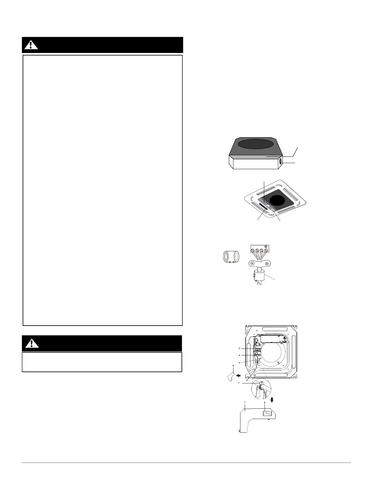 • Do not let wires touch or rest against refrigerant tubing, the
