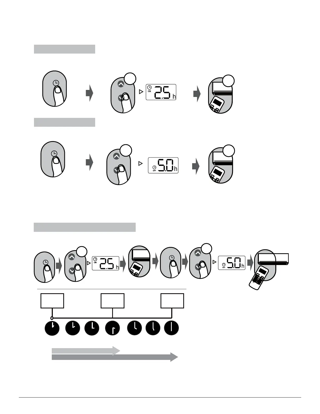 1. When setting the TIMER ON or TIMER OFF, the time will increase by 30 minutes increments with each