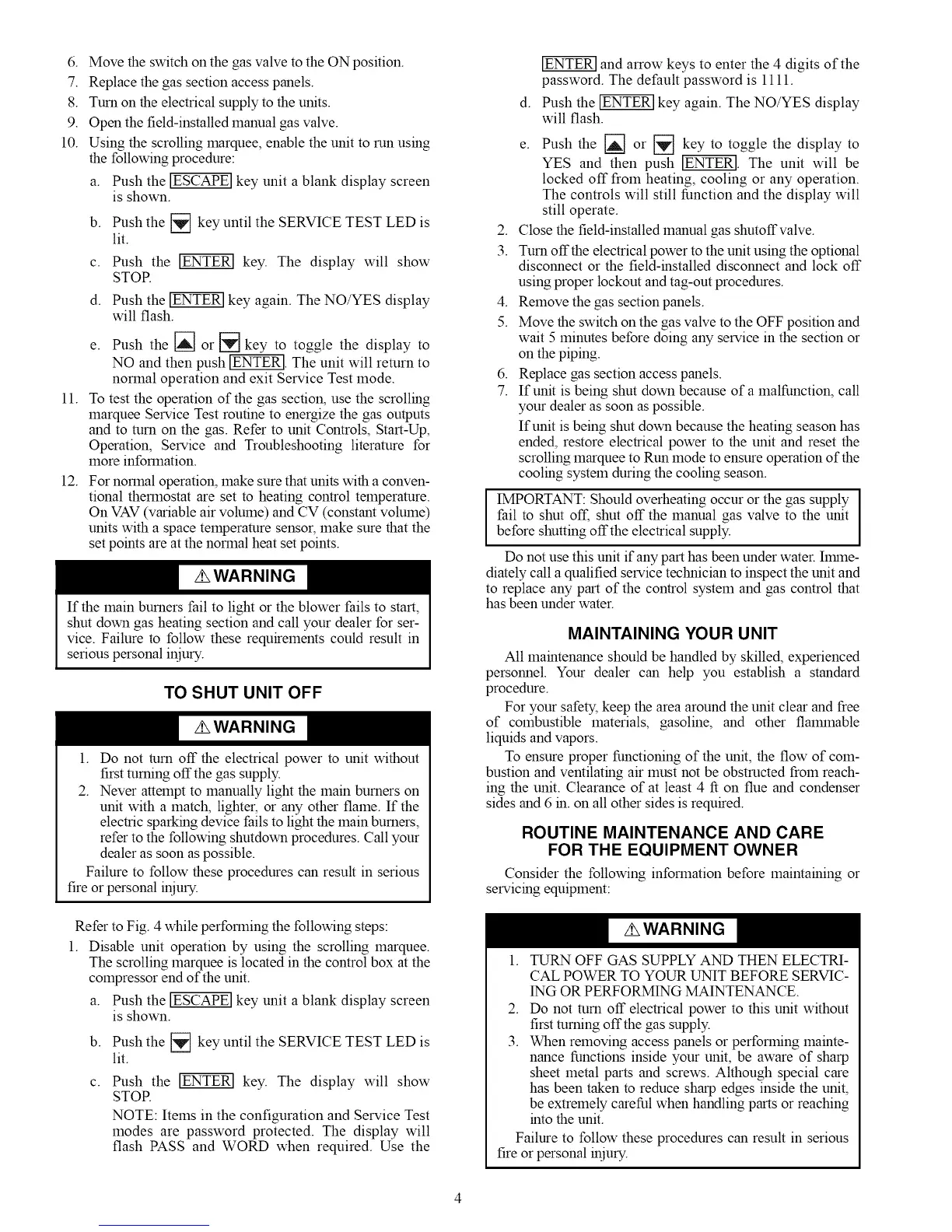 and to turn on the gas. Refer to unit Controls, Start-Up,