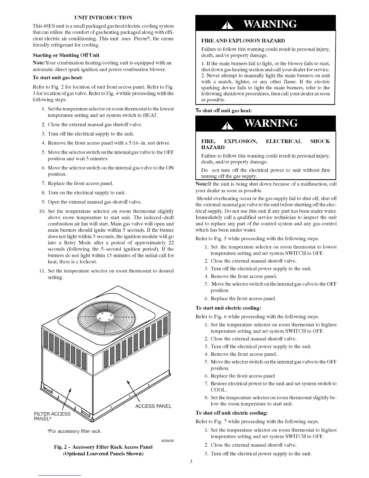 Refer to Fig. 2 for location of unit front access panel. Refer to Fig.