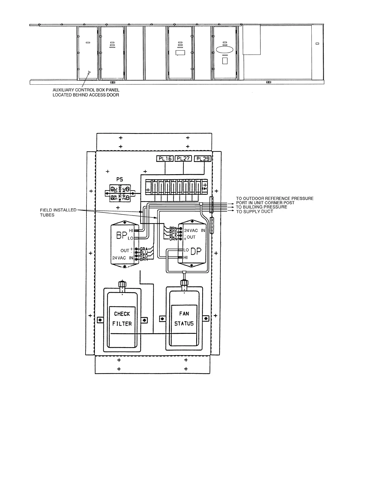 Fig. 32 — Auxiliary Control Box Details; Size 034-048 Units