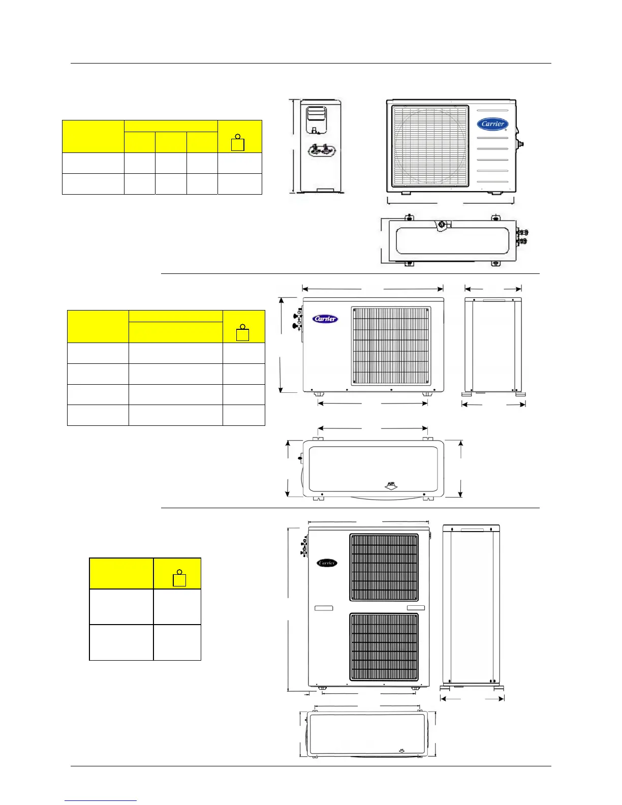 Carrier 48K - Outdoor Units Dimensions & Weights