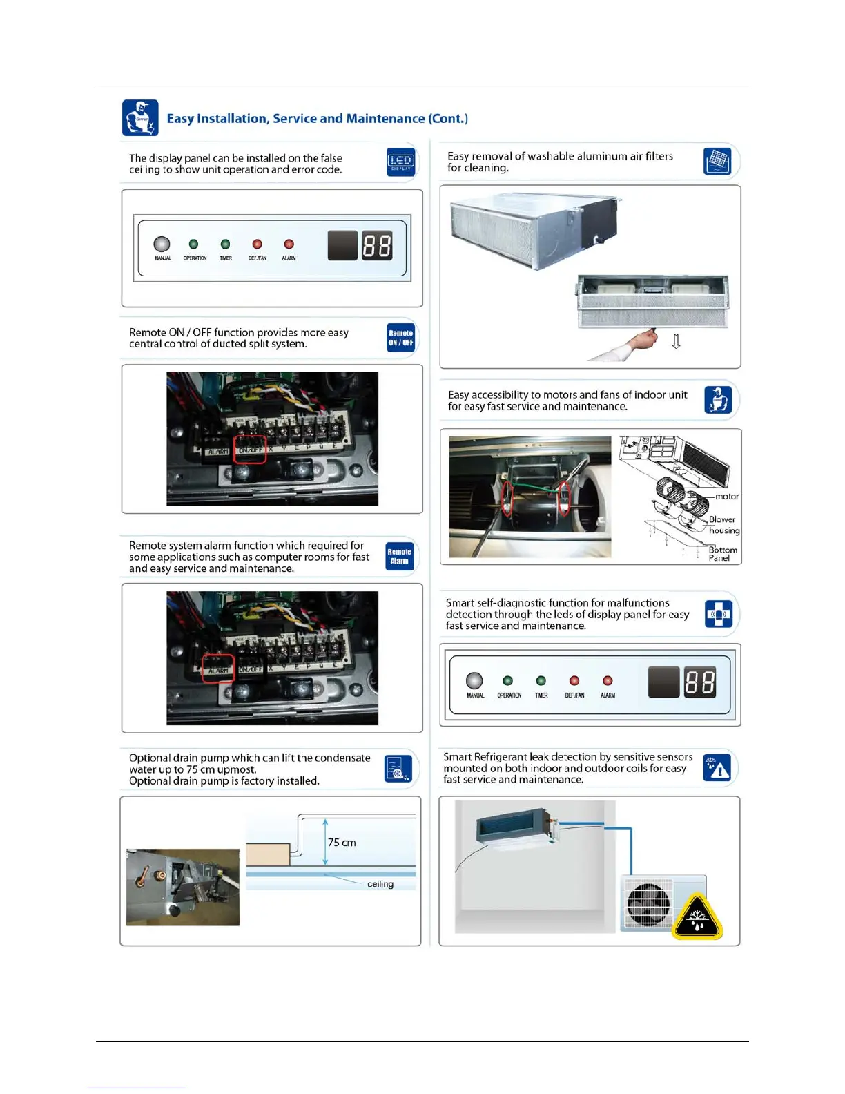 Carrier 48K - Serviceability and Safety Features; Remote Control and Component Access; Self-Diagnostic and Leak Detection