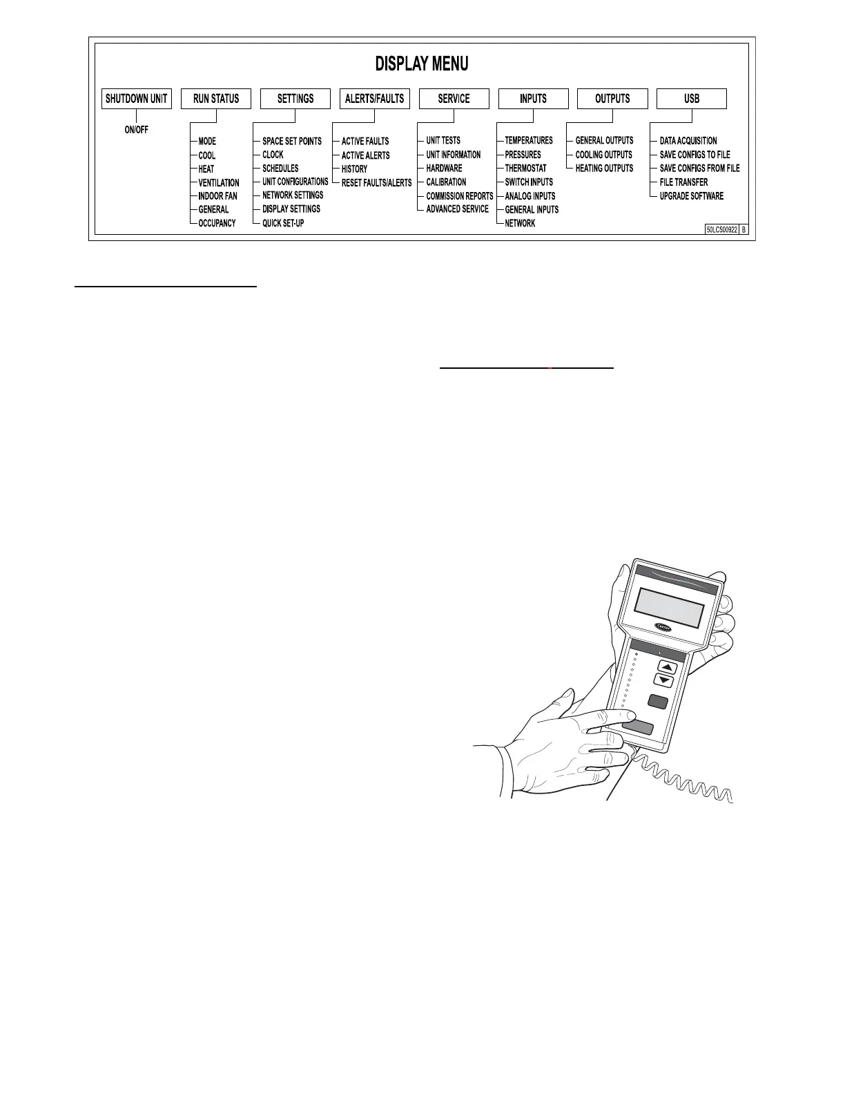 down arrow keys to scroll through the top--level menus. These are
