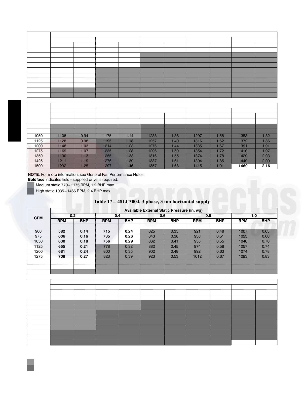 Table 17 – 48LC*004, 3 phase, 3 ton horizontal supply
