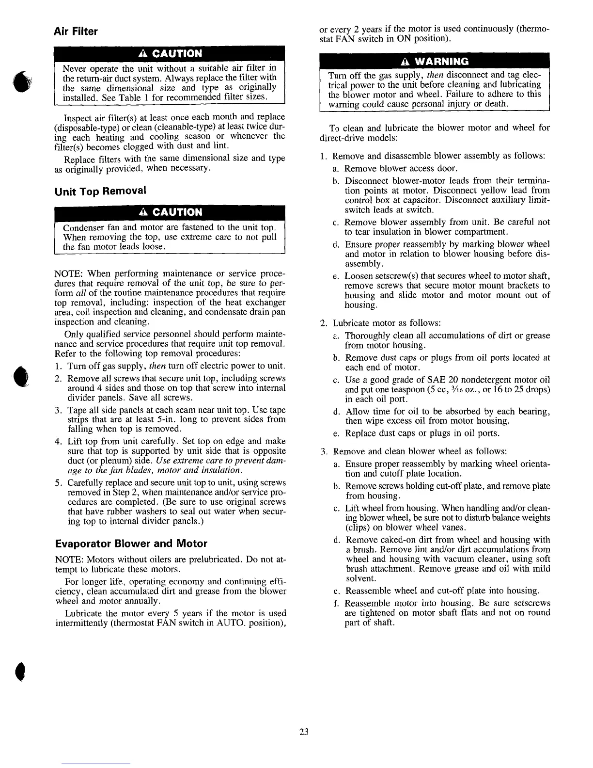 Carrier 48NET - Air Filter; Unit Top Removal; Evaporator Blower and Motor