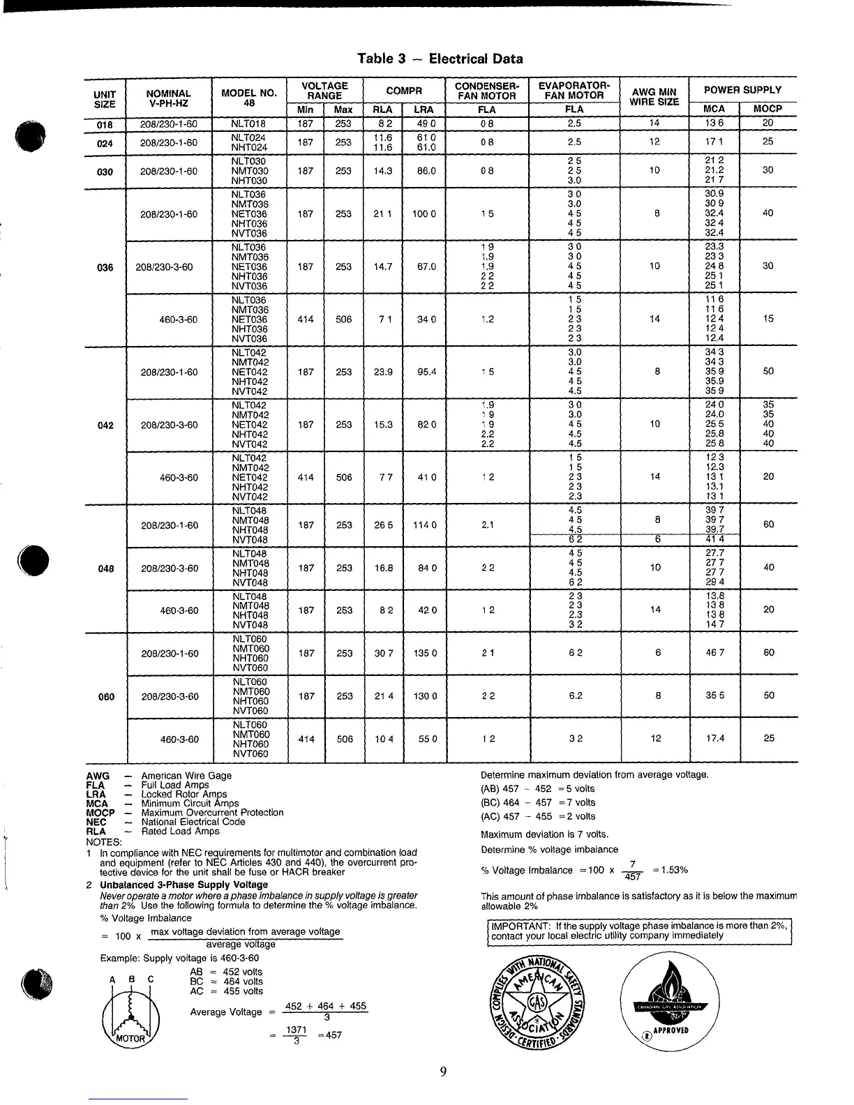 Carrier 48NET - Electrical Data