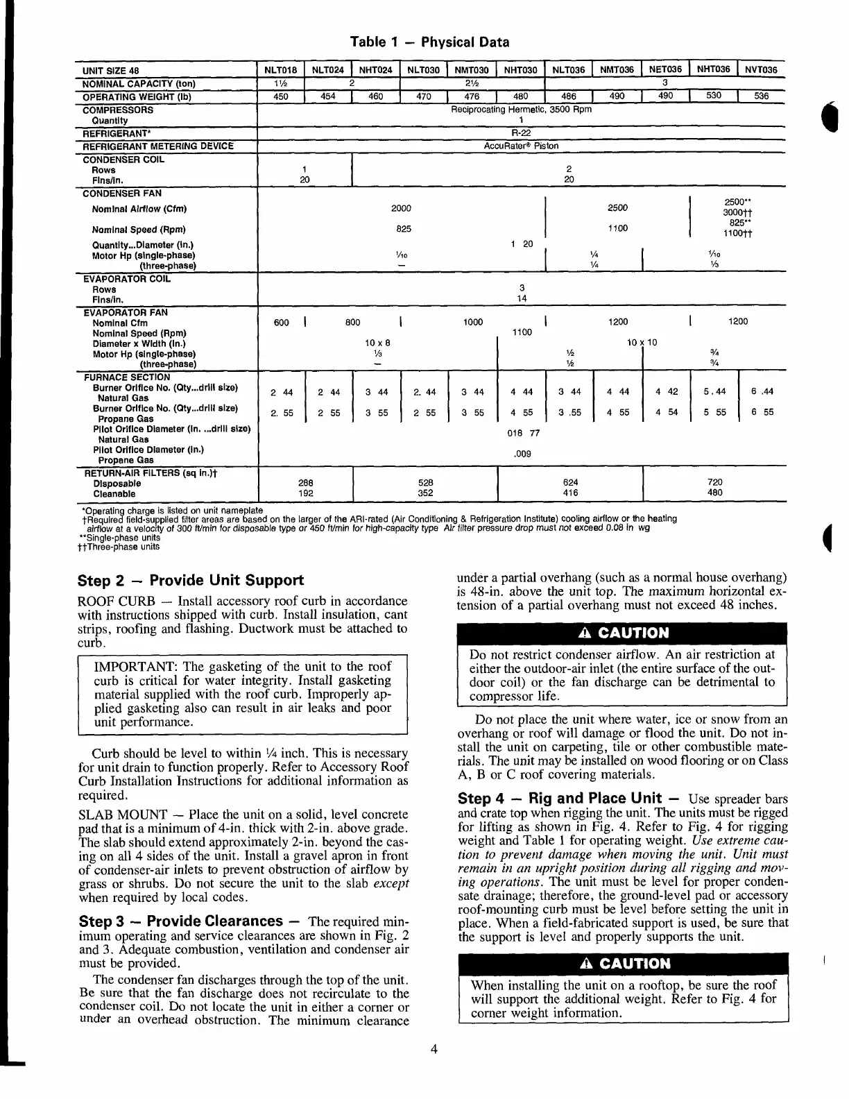 Carrier 48NLT - Provide Unit Support; Provide Clearances; Rig and Place Unit