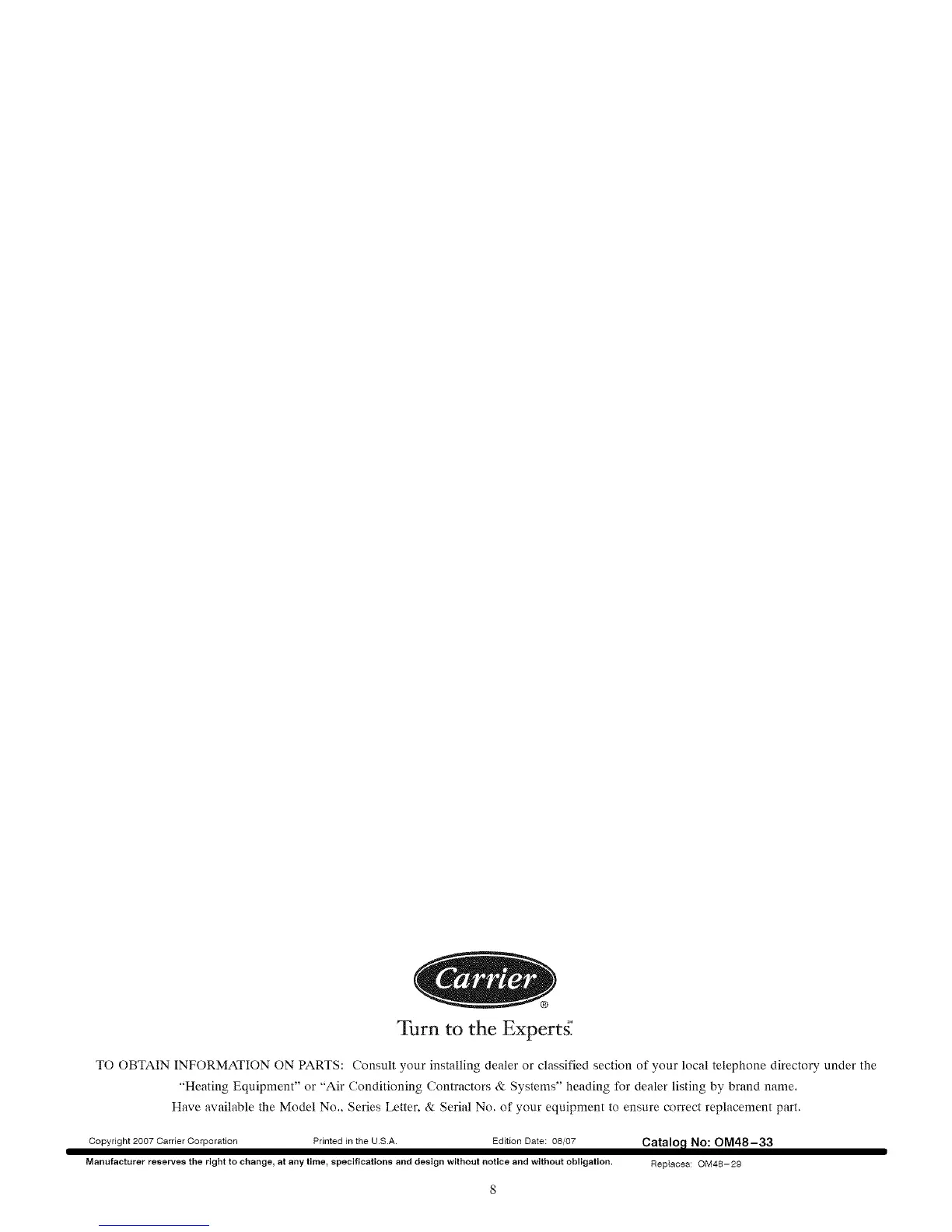 Copyright 2007 Carrier Corporation Printed in the US.A. Edition Date: 08/07