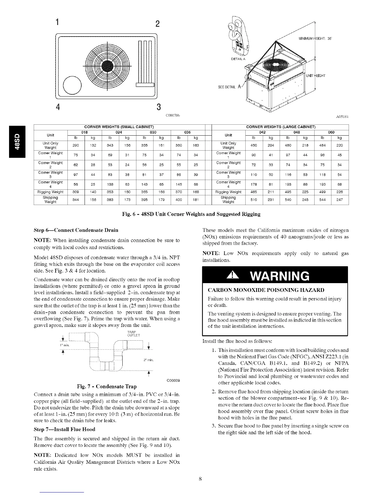 Fig. 6 - 48SD Unit Corner Weights and Suggested Rigging