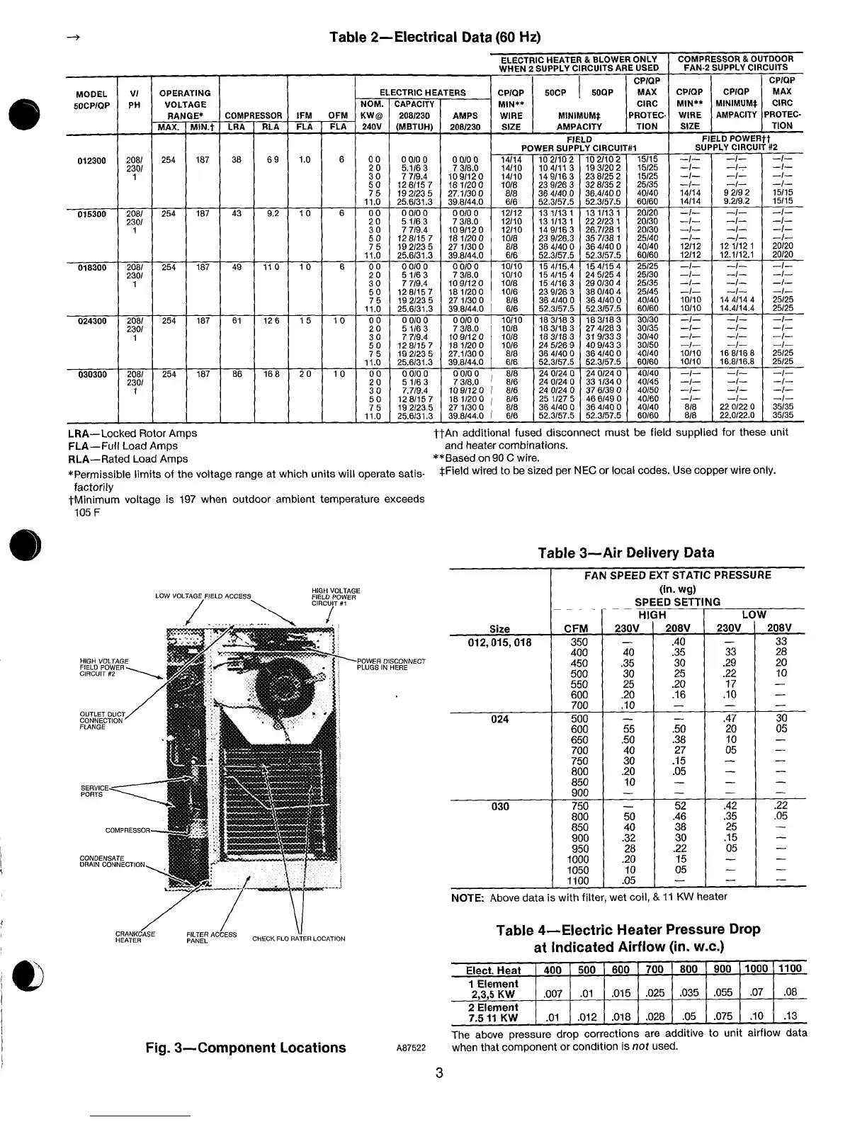 Carrier 50CP - Electrical Data; Air Delivery Data; Component Locations