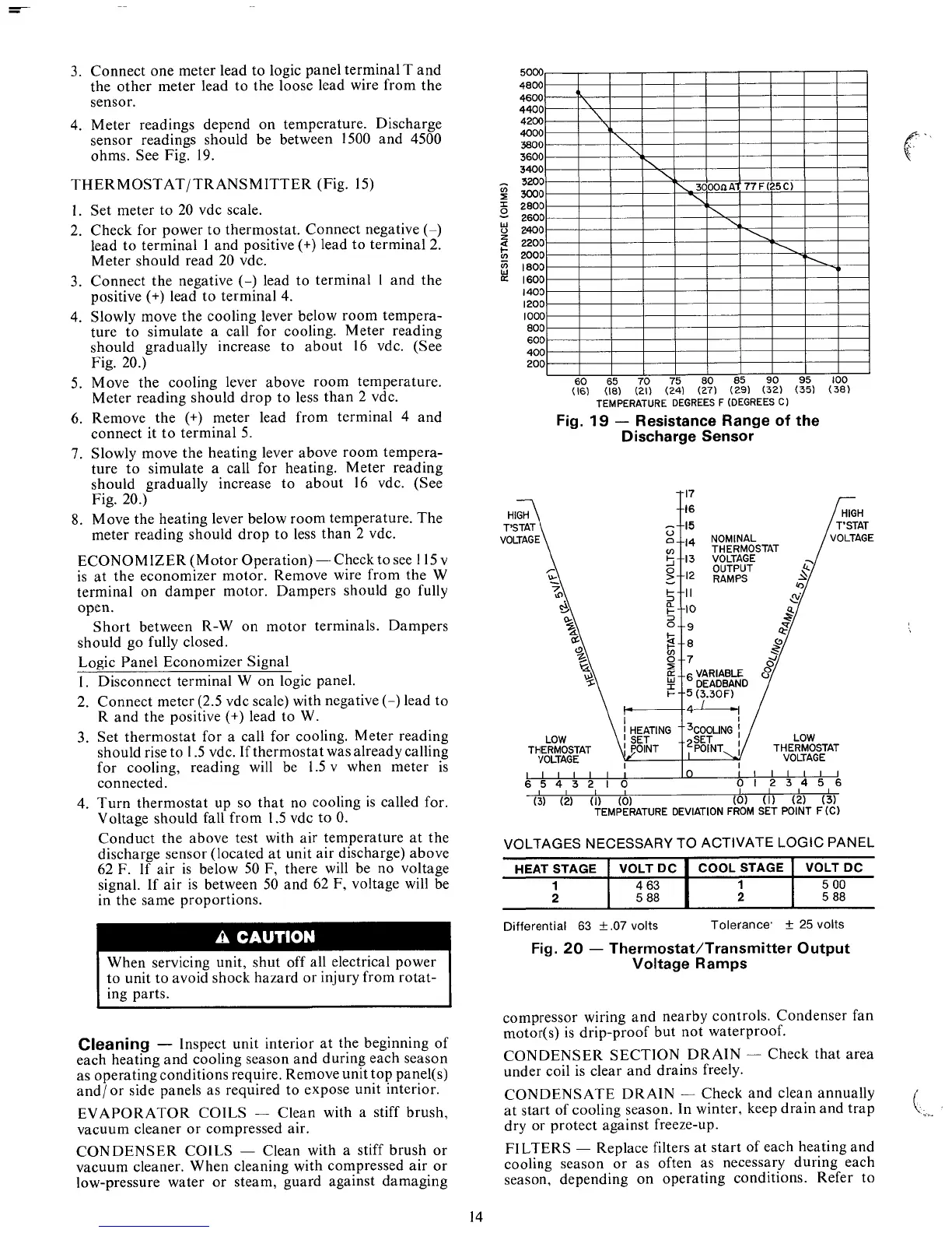 Carrier 50DF034 - Thermostat;Transmitter Testing; Economizer Motor Operation; Logic Panel Economizer Signal; Unit Cleaning Procedures