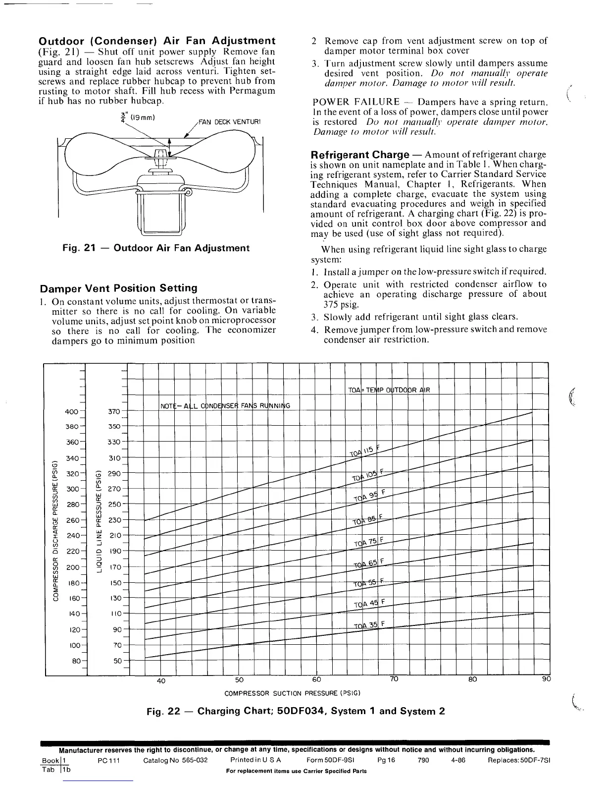 Carrier 50DF034 - Refrigerant Charging; Refrigerant Charge Amount